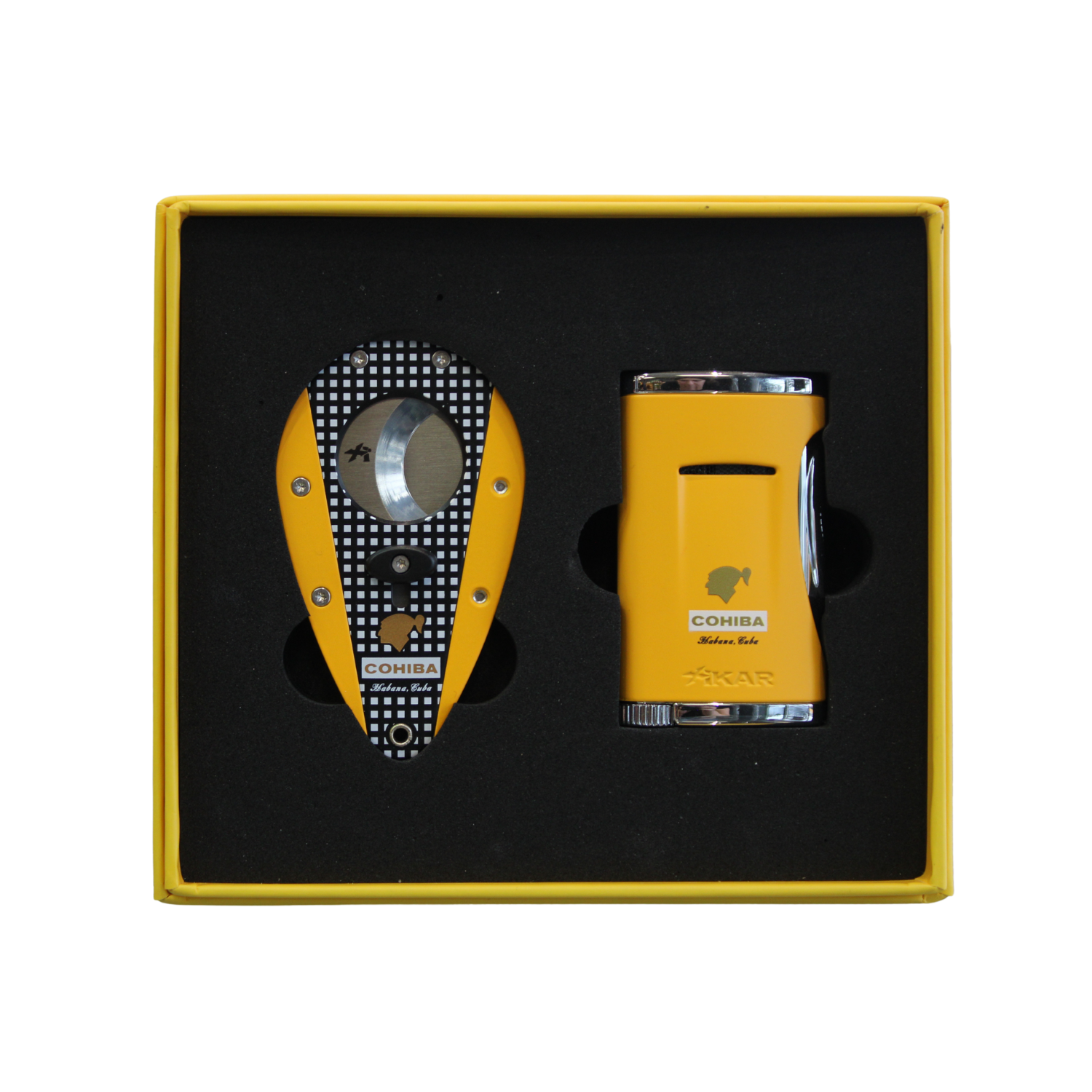 The Cohiba Cutter & Lighter Set combines refined aesthetics with powerful performance—crafted for those who appreciate the legacy and prestige of one of the world’s most iconic cigar brands. Designed in Cohiba’s signature black and gold colour palette, this set exudes sophistication, making it a standout accessory for any aficionado.